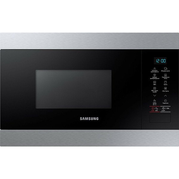 Рейтинг микроволновок 2025 продолжает фирма Samsung. Бренд предлагает еще одну встраиваемую СВЧ-печь, которая обладает массой преимуществ в виде достаточной мощности для быстрого разогрева (850 Вт), отличным грилем в 110 Вт, сенсорным управлением и объемной камерой в 22 л. Более того, биокерамическое покрытие микроволновки помогает в уходе, так как запахи не впитываются и все легко моется.
